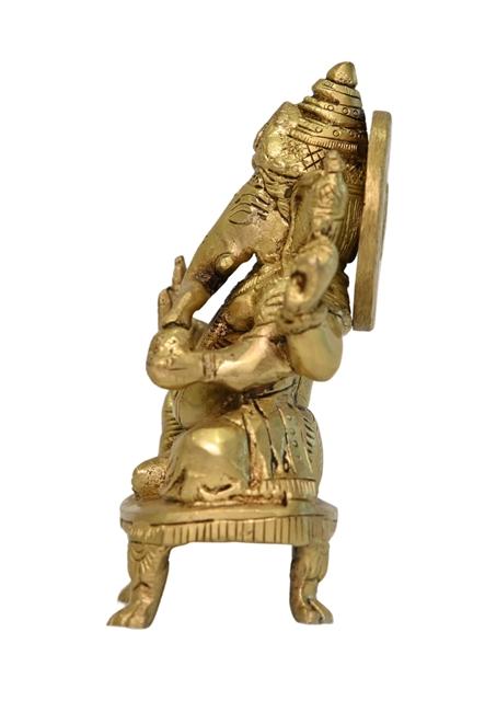 BRASS IDOL OF GANESHJI SAT ON SINHASAN
