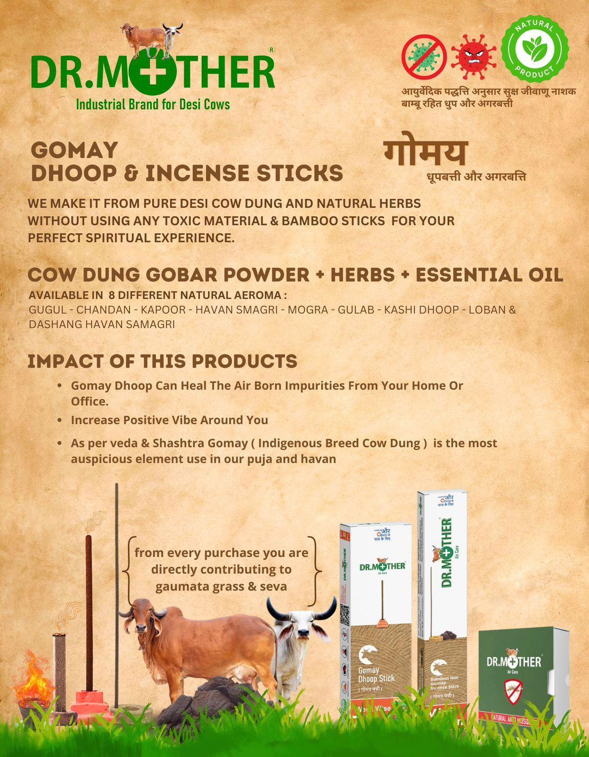DR.MOTHER Natural Cow Dung Dhoop Sticks (Herbal & Chemical-Free)