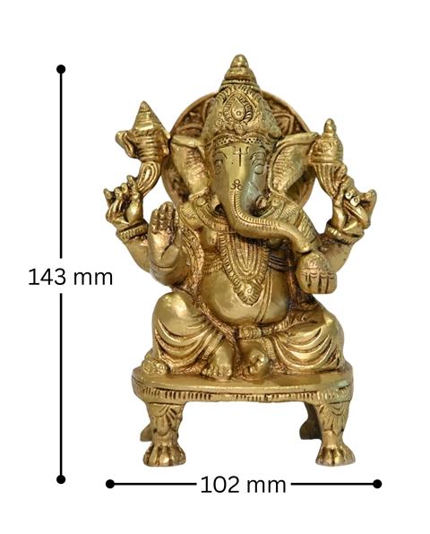 Elegantly crafted Brass Idol of Lord Ganesha seated on Sinhasan, symbolizing wisdom, prosperity, and royal divine grace. Ideal for home mandir, office, and auspicious gifting.
