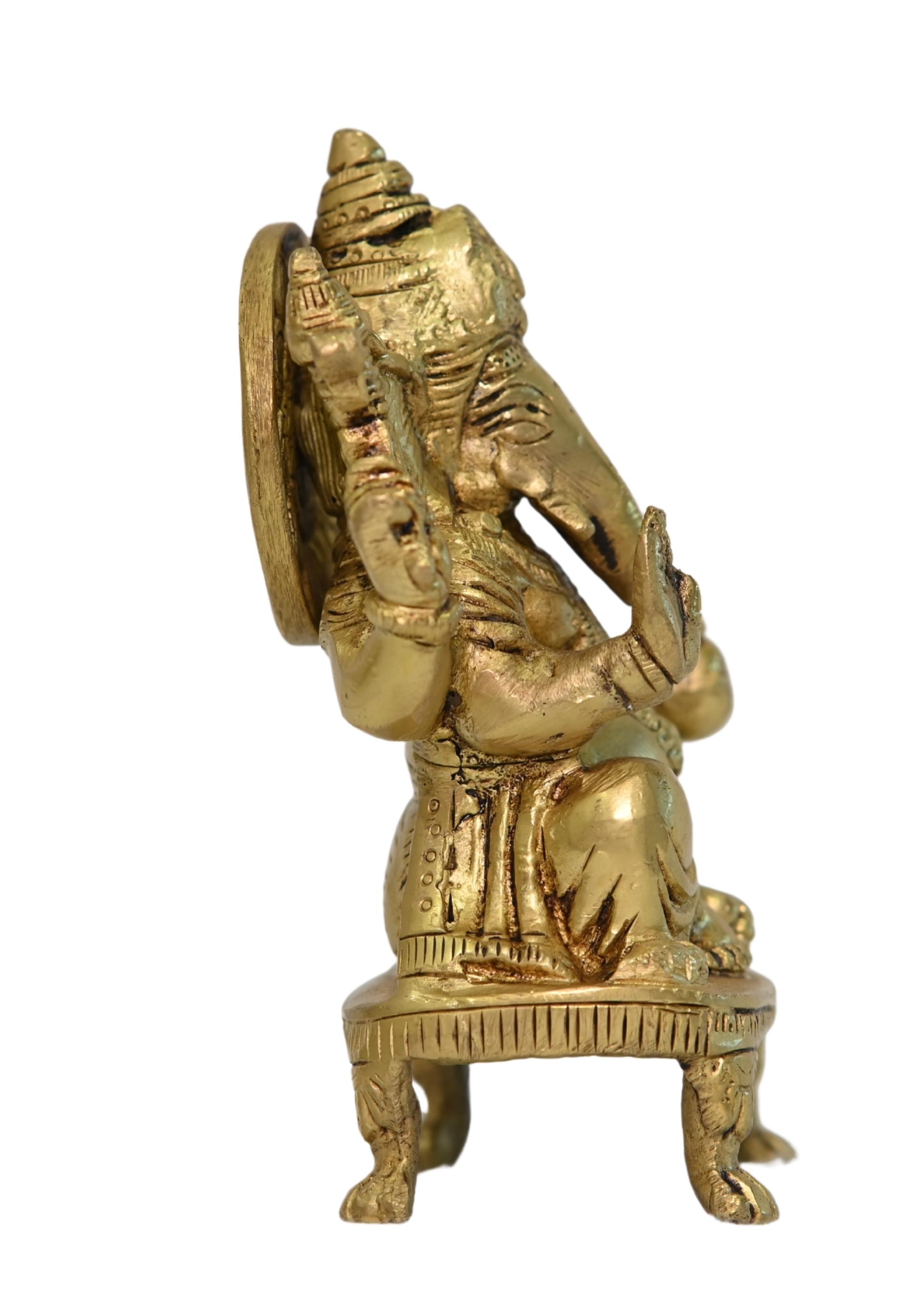 BRASS IDOL OF GANESHJI SAT ON SINHASAN